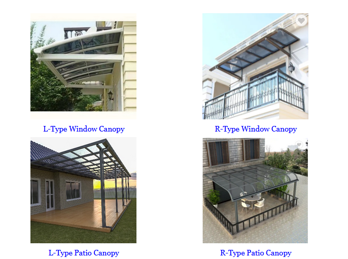 我们的聚碳酸酯窗帘和庭院雨棚系统/解决方案非常适合商业、广场和住宅。雨棚单元采用优质、耐用和优质材料建造,具有风格和稳定性,可供未来多年使用。客户可以选择标准建造单元。或者可以在我们团队的帮助下为单元定制颜色、尺寸和材料。请选择雨棚类型或与我们联系。